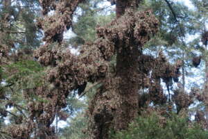La investigación consistió en recolectar semillas de quince poblaciones de oyamel (A. religiosa) a lo largo de intervalos de 50 metros en elevaciones entre 2850-3550 metros. Las plántulas se evaluaron en una prueba de jardín común durante un período de 30 meses. Se encontraron diferencias significativas entre las poblaciones en el alargamiento total, la altura, la fecha de cese del crecimiento, el follaje, el tallo y el peso seco total, así como el daño por heladas. Estas diferencias estaban fuertemente asociadas con las bajas temperaturas. Al recolectar semillas cerca de los picos de las montañas, el cambio altitudinal excedería las elevaciones más altas dentro de la RBMM. Esto llevó a los autores a concluir que los rodales de A. religiosa deben establecerse fuera de la RBMM, en montañas y volcanes más altos, como el Nevado de Toluca, el Popocatépetl, el Iztaccíhuatl y el Pico de Orizaba, como posibles sitios futuros de hibernación. ¡Alimento para el pensamiento a medida que se acerca el futuro y el cambio climático está sobre nosotros y las monarcas!
